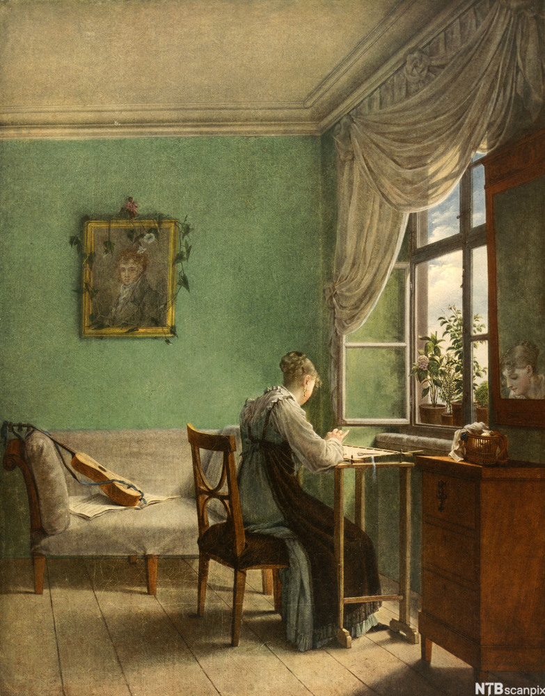 For både maleri og litteratur var det viktig for å gi uttrykk for følelser og fantasi.. Der er blevet brugt få og varme farver til dette maleri. Periodens udstrækning og betydning inden for den nationale litteratur kan være forskellig fra land til land. Det er meget ens farver der er brugt, hvilket udviser harmoni og det er et af kendetegnene i romantikken. For både maleri og litteratur var det viktig for å gi uttrykk for følelser og fantasi. Farverne blå, grøn og grå er de farver som der bliver set mest tydeligt, og det er nogle farver der symboliserer … 1870, hvor det moderne gennembrud startede. Romantikken var en betydningsfuld periode i slutningen af 1800tallet, som satte sig spor både kulturelt, kunstnerisk og menneskeligt. Allerede i 1770'erne fremtrådte en del af de træk, der kendetegner bevægelsen, i præromantikernes dyrkelse af middelalderens kunst og arkitektur og i deres stærke. Den afløste den foregående stilart, nyklassicismen, der begge værdsatte det levende billede og de immaterielle værdier.dog var der væsentlige forskelle mellem de 2 stilarter i forhold til meningsindhold og kunstnerisk tilgang.